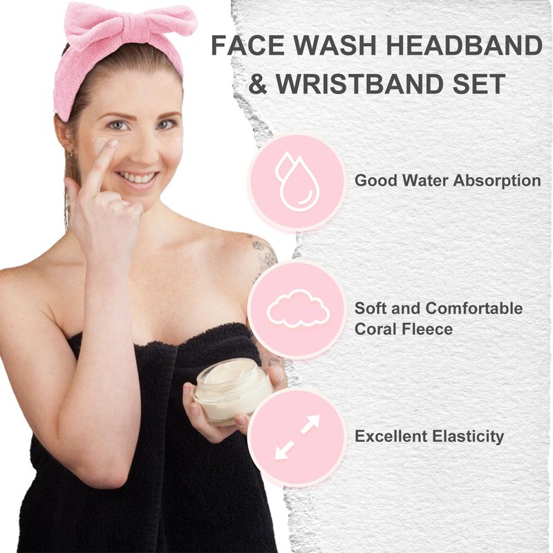 - 【Multi-Functional】This skin care headbands and waterproof wrist strap is a useful accessory for women and girls when doing spa, sports, yoga, face washing, makeup and bathing, effectively keeping hair neat and away from the face, also convenient to absorb water.