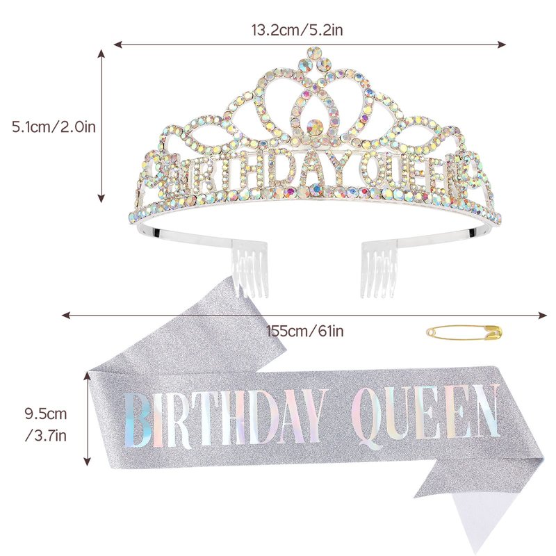 - One Size Fits All: With 61” length, our birthday sash fits all type body figures. It can be easily adjusted by a clip. The birthday crown comes with comb design, they are suitable for all kinds of hair and stay in place.