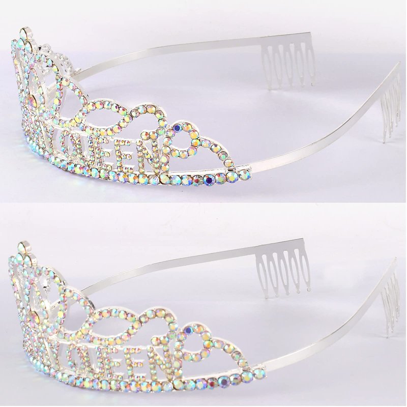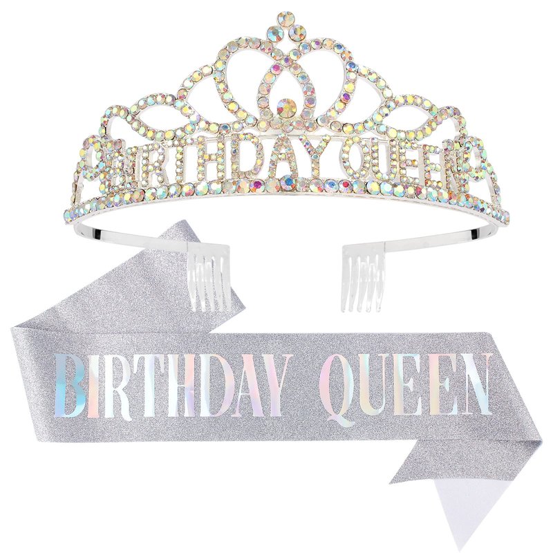 Silver "Birthday Queen" sash + AB rhinestone tiara gifts set.