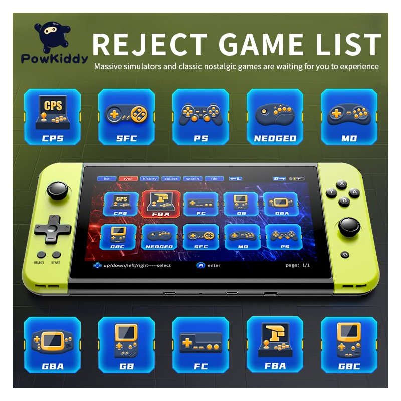 - Visual Enjoyment - This POWKIDDY X70 handheld game console has a 7-inch IPS high-definition screen with a resolution of 1024x600, which can bring you vivid game pictures.