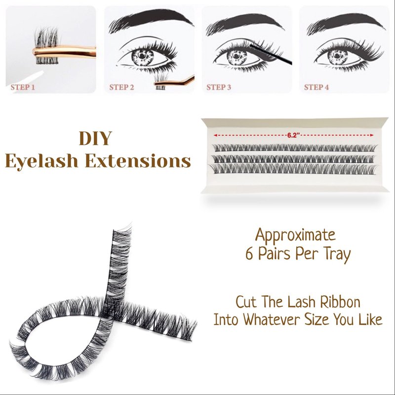 - 【 Customize Creating Your Own Lashes】Custom Cut The Lash Ribbon Into Smaller Segments Of Your Liking, Like 1, 2, 3 Clusters, Or The Entire Strip.