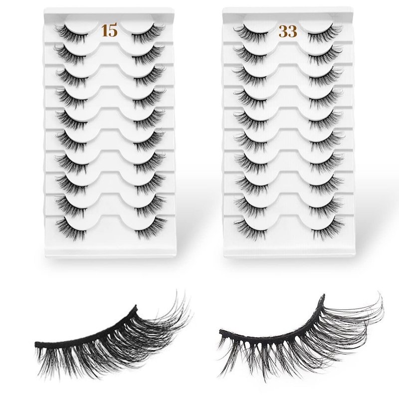 CB Value Pack 20 Pairs/ 2 Trays 3D Fluffy Half Lash Strip, 3/4 Length Cat-Eye False Eyelashes, Black Band Natural Look Wispy Soft Strip Lashes, Multiple Styles, 15 & 33