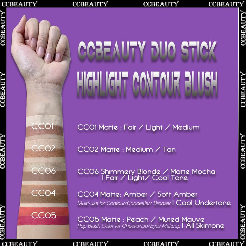 Amplify your look with our all-purpose CCbeauty Highlight & Contour Stick that has a creamy finish that conceals, highlights and contours with ease. CCbeauty Contour Stick is available in 5 different shade combinations to fit most of skin tones.