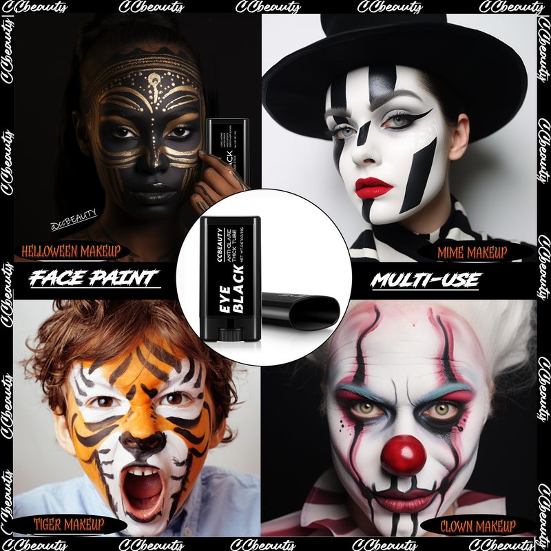 - MUST-HAVE & MULTI-USE - CCBeauty Champion eye black thick stick not only canbe used as eye black for baseball,football,softball sports,but also for face body paint makeup for Halloween. Suitable to create perfect looks daily and special occasions,such as Clown, Joker, Zombie, Vampire,Skeleton makeup at your next school carnival, Special Effects, SFX,Cosplay,birthday, gold sports, theatrical performances, themed costume, stage shows and more!