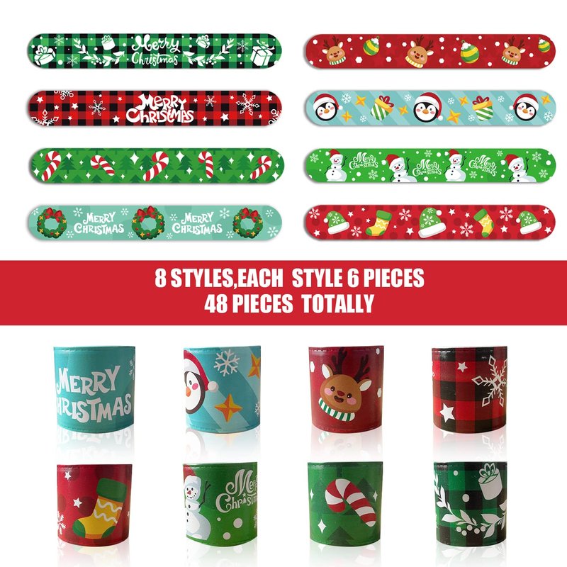 - Value Pack:You will get 48 pack Christmas slap bracelets in 8 different patterns, 6pcs for each. Abundant quantities of slap bracelets for you to share with your family and freinds.
