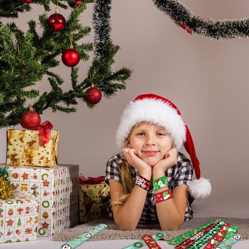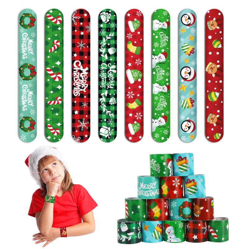 - Material: The Christmas slap bracelets are made with flexible mental core and smooth PVC,sturdy and durable. Comfortable to wear, no harm to skin, suitable for kid Christmas party