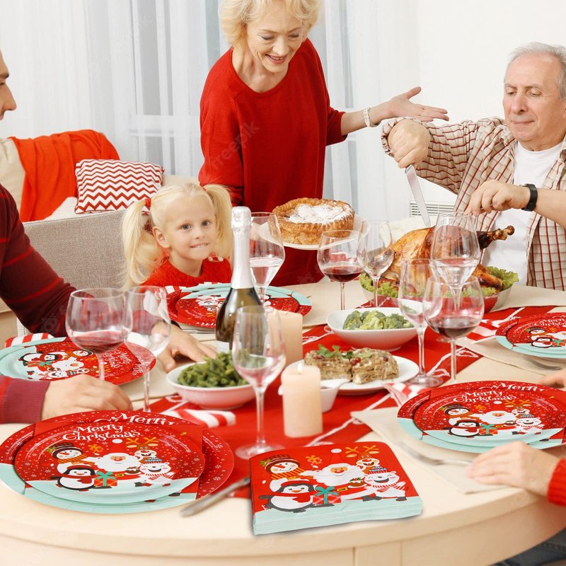 - Unique Design: Our Christmas element plates, napkins, cups are specially design, such as Santa Claus, Elk, Christmas trees, snowman etc. These dinnerware sets are perfect for celebrating a Christmas and Thanksgiving Party. Dressing any tables and surprise your guests, making the party more fun and attractive.
