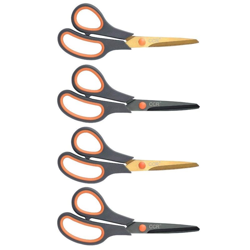 CCR Scissors 8 Inch Soft Comfort-Grip Handles Sharp Titanium Coating Blades, 4-Pack