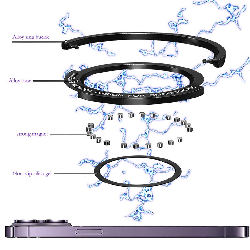 - [Metal Phone Ring Holder Grip Compatible with Magsafe Charger]:This metal ring is not magnetic, Compatible with Magsafe charger/Magsafe car mount holder,only compatible for PC or TPU case without a non-slip coating.