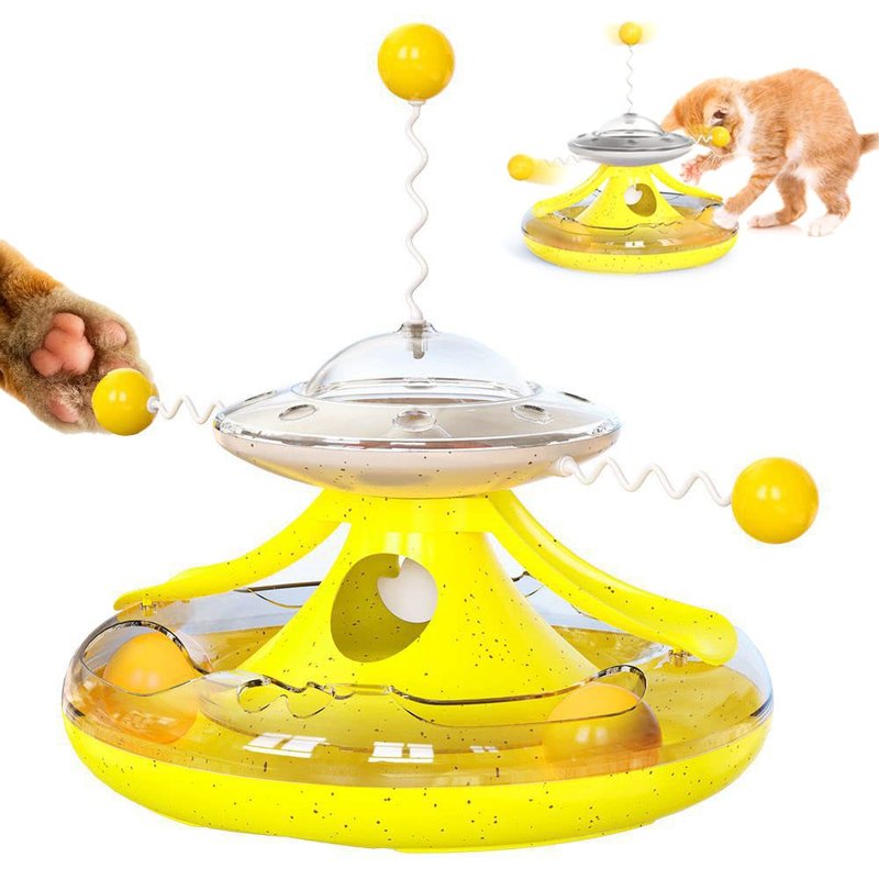 - 【Multiple funny cat stick design】 The top of the kitty toys is designed with a interactive cat stick with spring,and two interactive cat balls are designed on both sides of the middle turntable.The cat can make the turntable rotate by flipping the interactive cat stick.provides hours of exercise & self-amusement for health care and elimination of boredom and pet depression since your cat can play alone when master is not at home.