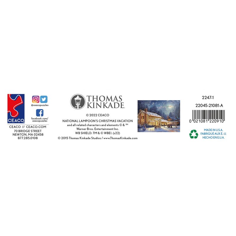 - Jigsaw puzzle featuring National Lampoons Xmas Vacation as created by world-famous artist Thomas Kinkade and made by Ceaco.