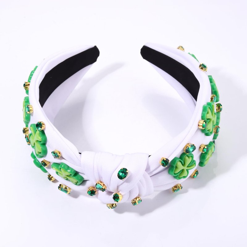 CEALXHENY St. Patrick's Day Hair Accessories, Green Shamrock Headband for Women, Embellished Crystal Rhinestone Knotted Headband, Irish Holiday Gifts (Shamrock 3)
