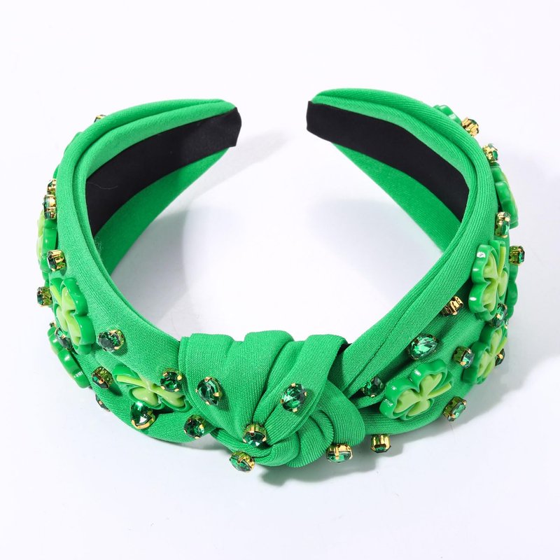 CEALXHENY St. Patrick's Day Headband for Women Green Shamrock Headband Embellished Crystal Rhinestone Knotted Headband St. Patrick's Day Hair Accessories Outfits Irish Holiday Gifts (Shamrock 2)