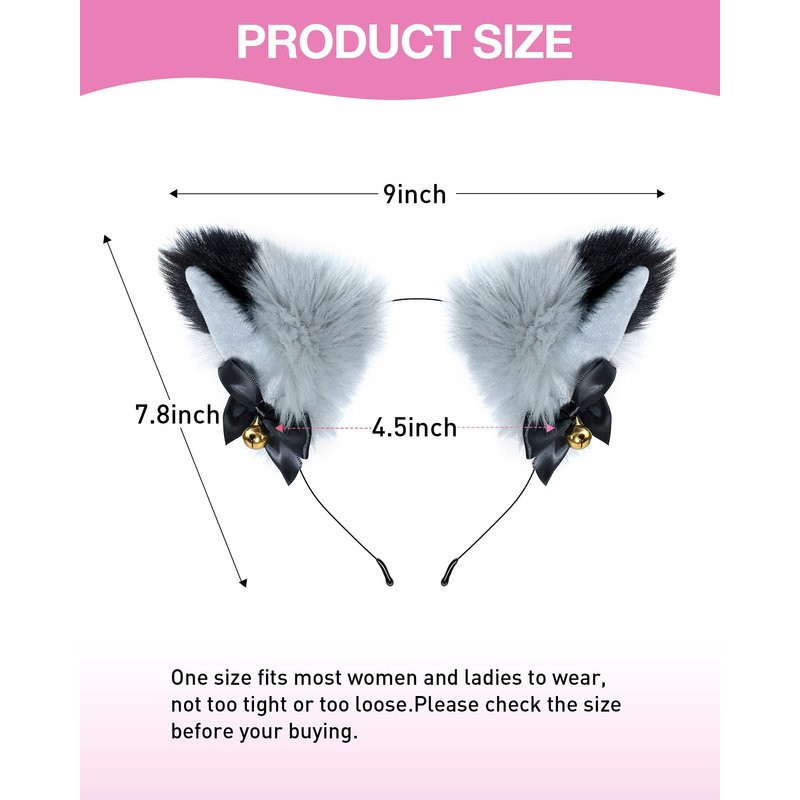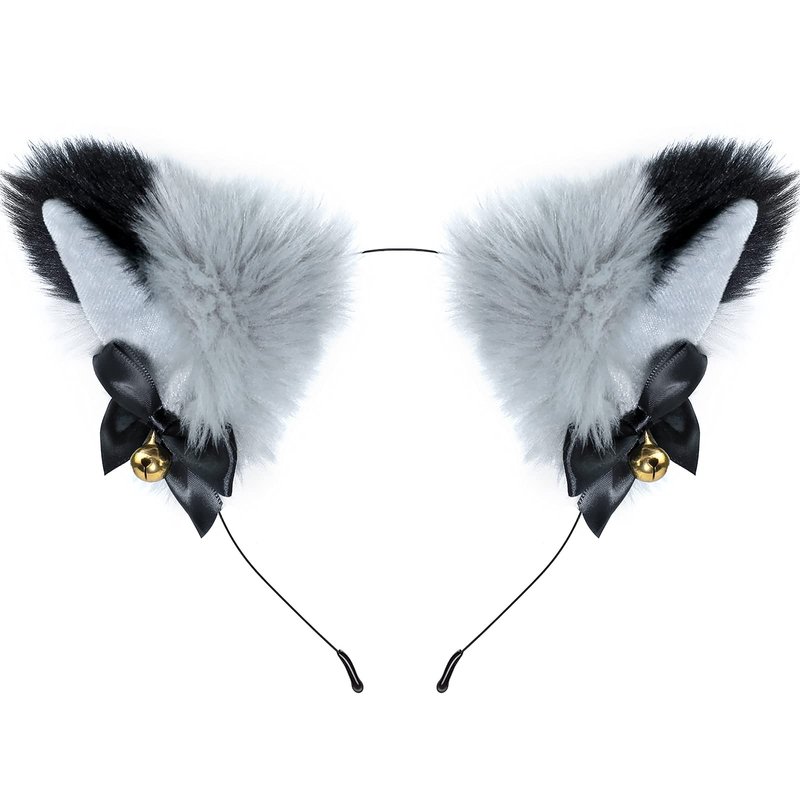 CEDAR BRIGHT Fox Cat Ears Anime Cosplay - Animal Wolf Headwear, Halloween Headband,Headpiece Costume Accessories with Bells (Gray)
