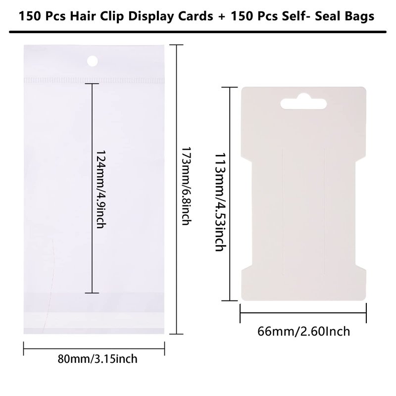 - Package lncludes: 150 x Hair clip display cards + 150 x Self- Sealing Bags