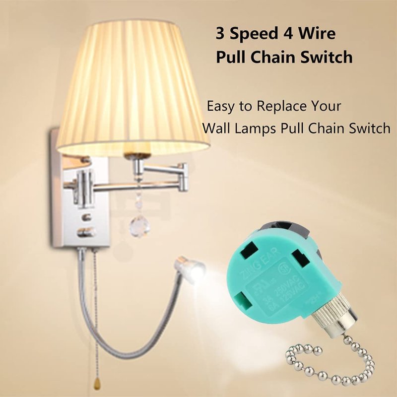 Ceiling Fan Switch 3 Speed 4 Wire Zing Ear ZE-268S6 Pull Chain Cord Switch Replacement for Ceiling Fans,Wall Lamps,Cabinet Light (Nickel Pull Chain)