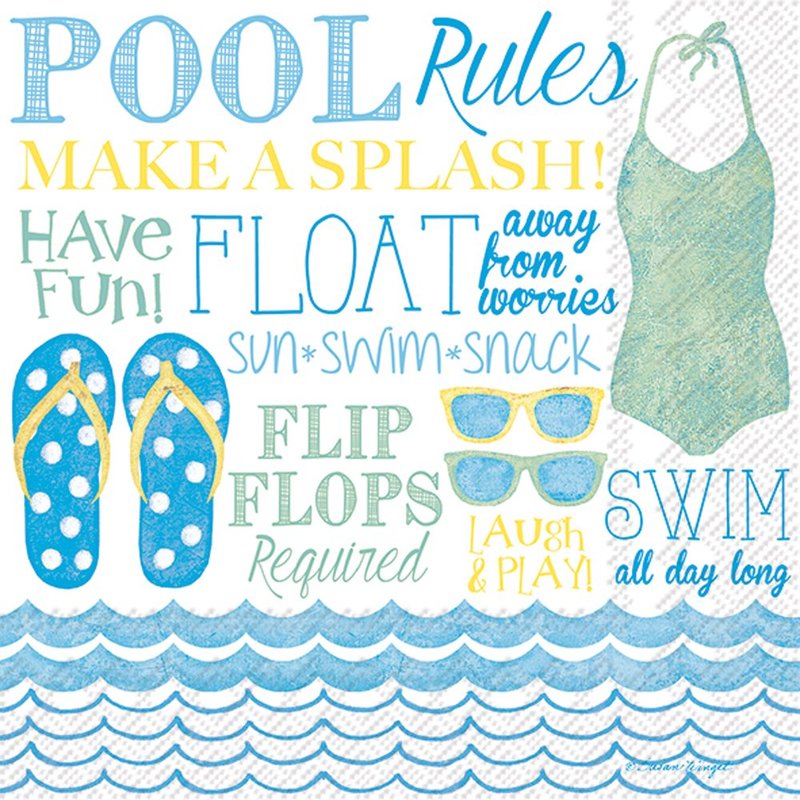 Celebrate the Home Summer 3-Ply Paper Cocktail Napkins, Pool Rules, 20-Count