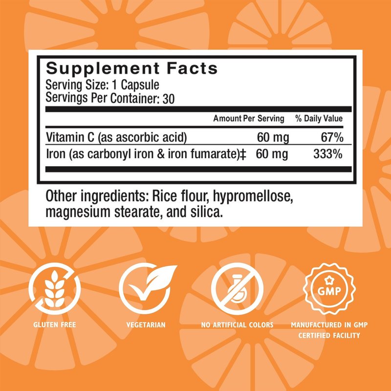 - Convenient and Easy to Take: These easy to swallow capsules provide a hassle-free way to meet your iron needs, making it simple to incorporate into your daily routine
