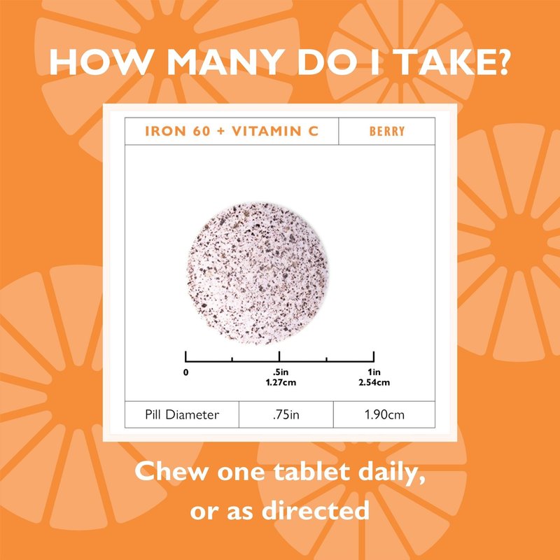 - Essential Iron Support: Iron 60 Iron with Vitamin C chewable tablets deliver a crucial 60 mg dose of iron, tailored for bariatric surgery patients to maintain optimal iron levels