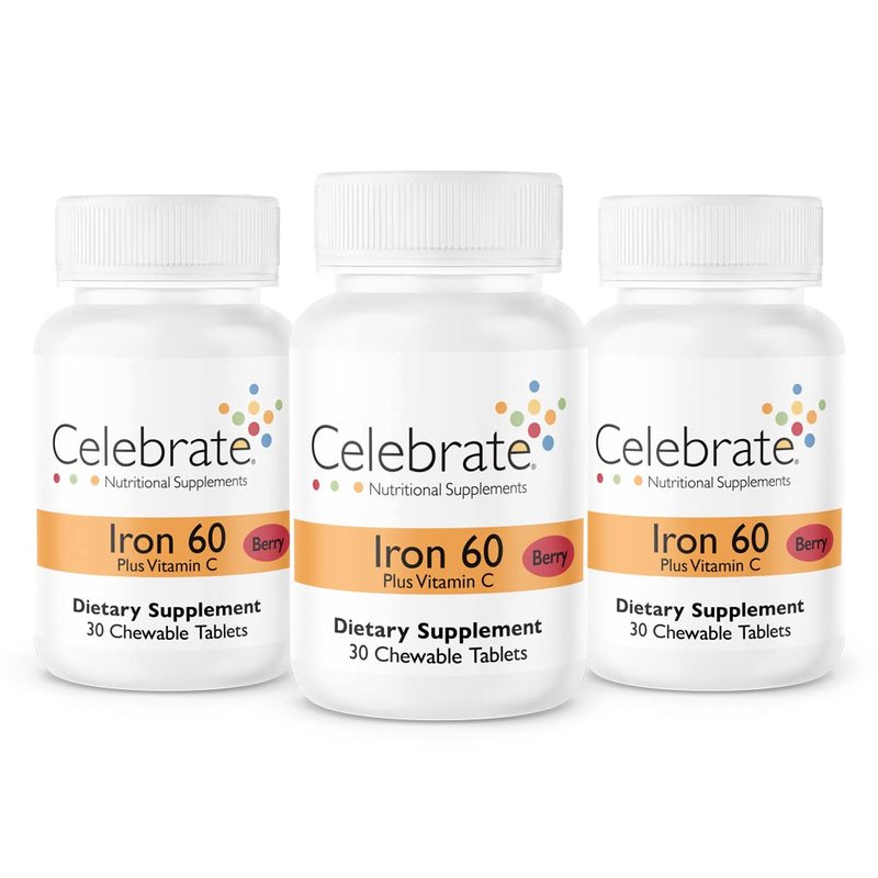 Celebrate Vitamins Iron with Vitamin C Chewables, 60 mg Iron, Berry, Bariatric Vitamins for WLS Patients Including Sleeve Gastrectomy and Gastric Bypass Surgery, 90 Count, 3 Month Supply