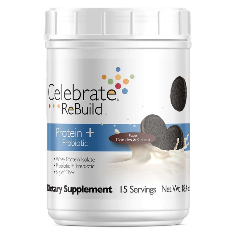 Celebrate Vitamins Rebuild Whey Isolate Protein Powder with Probiotic and Prebiotic, 20g Protein, Gluten Free, Cookies & Cream,15 Servings