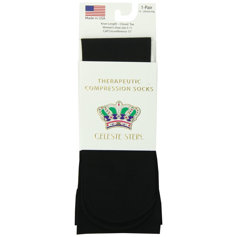 Celeste Stein Therapeutic Compression Socks, Black, 15-20 mmHg, Moderate, 0.6 Ounce