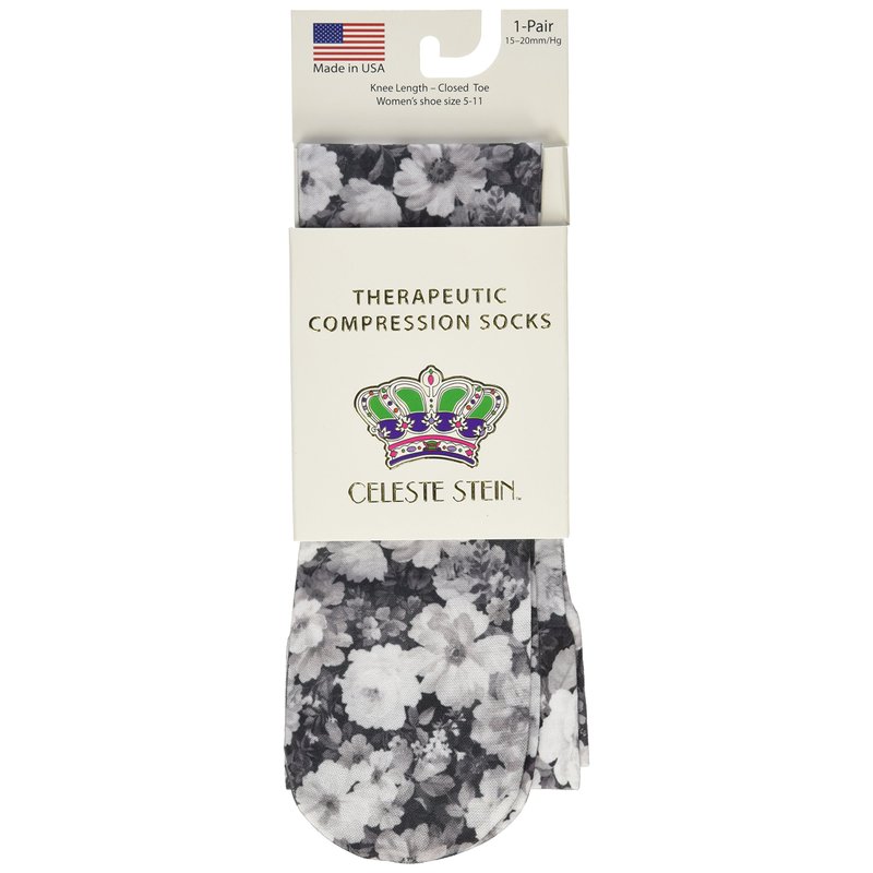Celeste Stein Therapeutic Compression Socks, Noir Roses, 15-20 mmHg, Moderate, Ant Floral, 0.6 Ounces