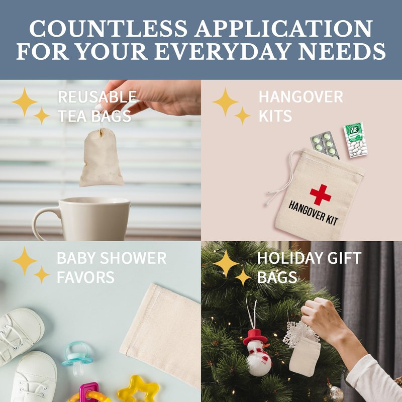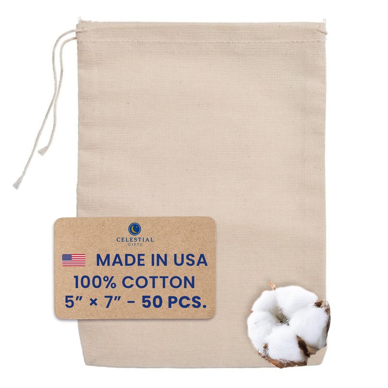- LONG-LASTING SUPPLY FOR ALL YOUR NEEDS: Celestial Gifts provides a generous supply of natural-colored Cotton Muslin Bags with Drawstrings, proudly made in the USA. Available in bulk, these multipurpose bags cater to all your storage and gifting needs. Customize them to create unique gift bags, tea bags, spice bags, or cloth gift bags. Embrace the abundant quantity and exceptional quality of our reusable cotton muslin bags.