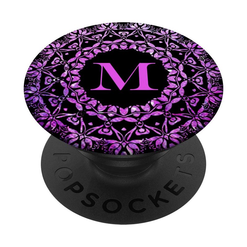 Cell Phone Pop Up Grip Holder,Monogram Mandala Pink Purple M PopSockets Grip and Stand for Phones and Tablets