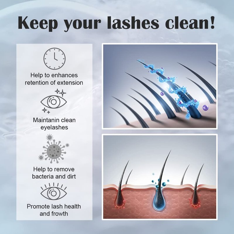 - Suitable for home care – Safe for makeup remover and eyelash cleaning before and after applying professional eyelash glue, effectively cleaning natural eyelashes to extend eyelash extension life and improve mascara appearance.