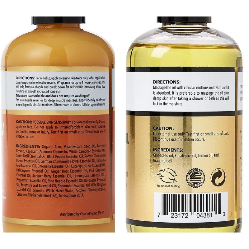 Cellulite Massage Oil & Hot Cream - 100% Natural Cellulite Oil & Gel, Highly Absorbable, Firm, Tone, Tighten & Moisturize Skin - Soothes Muscles (8.8 Fl Oz Each Bottle)