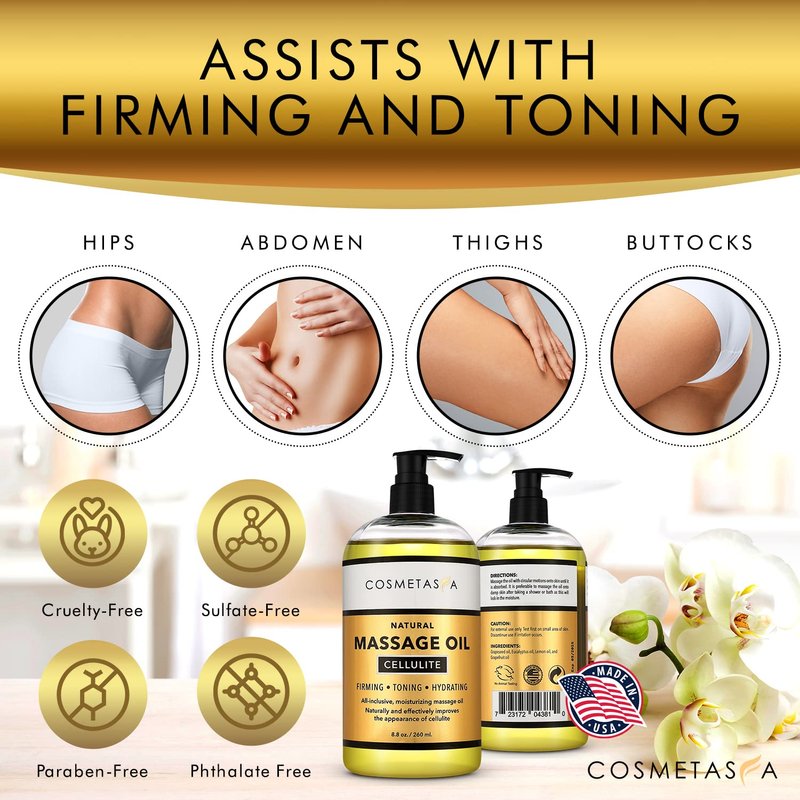 - ALL NATURAL BENEFICIAL INGREDIENTS- Cosmetasa Anti-Cellulite Massage oil is cruelty ,paraben ,sulfate and phthalate free. It is also free of any artificial fragrances.
