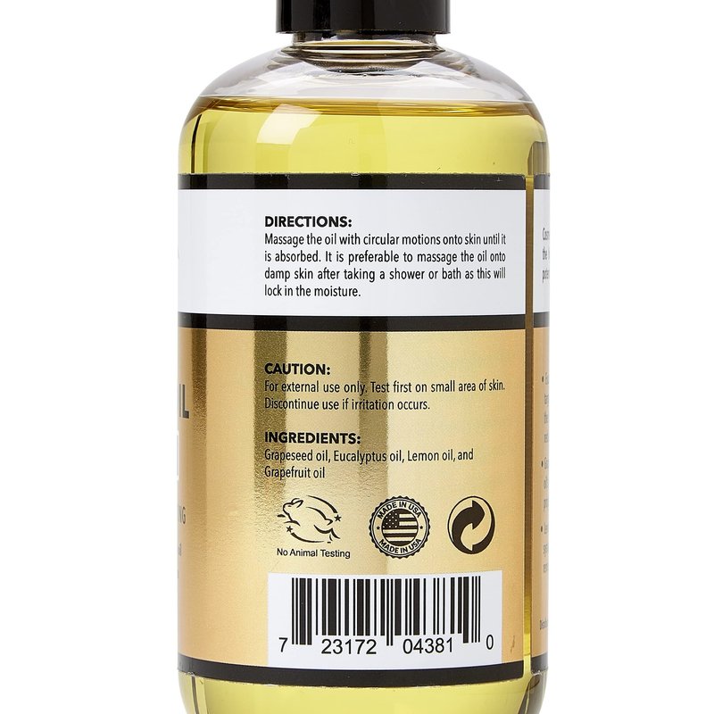 - TONING AND MOISTURIZING- Eucalyptus and grapefruit essential oils together with Grapeseed oil greatly contributes to our massage oil’s regenerating, moisturizing, and skin tightening properties. So go ahead and reap the skin firming benefits of our effective massage oil and bask in the glow of your hydrated, supple and nourished skin.