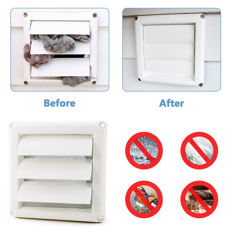 - 【 WIDELY USED 】 : Our outdoor dryer vent cover is suitable for 4-inch dryer exhaust pipe openings. You can use our products to ventilate your home bathroom, air conditioner, kitchen range hood, dryer, surrounding walls or other places. The Louvered Dryer Vent Cover will automatically open the fan blade when working, and close the fan page when the work is finished. Prevent external organisms from entering the exhaust pipe outlet, and ensure the air circulation at the exhaust cover of the outdoor dryer.