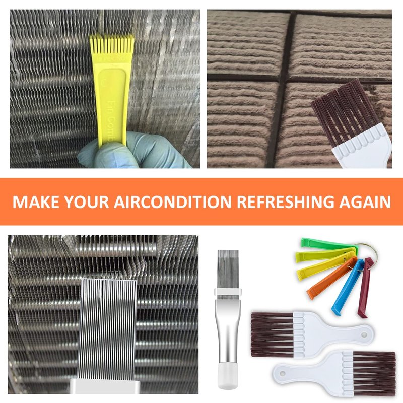 - 【WHAT IS INCLUDED? 】:AC condenser fin comb tool set includes 1 FCR6 Ring Fin Comb,1 metal radiator fin comb and 2 air conditioner fin cleaning brushes.Regularly use the radiator cleaning brush to clean the equipment, which can improve the efficiency of the air conditioner. Efficiency is very important for air conditioners. When you are using it, you can pull the bracket inward and insert the curved head of the brush inward to clean dust or straighten the deformed condenser