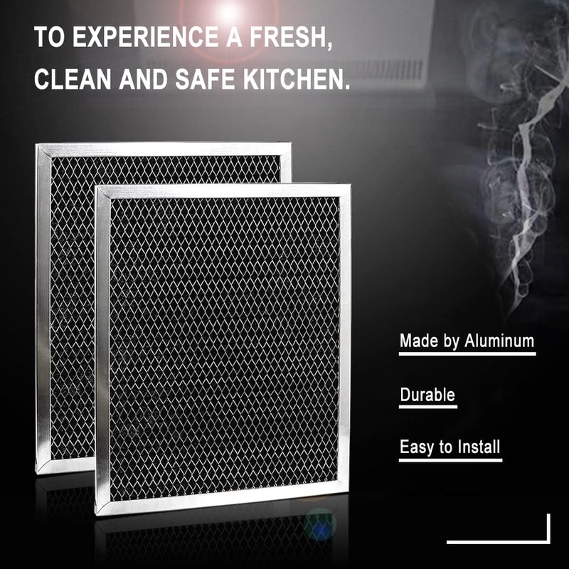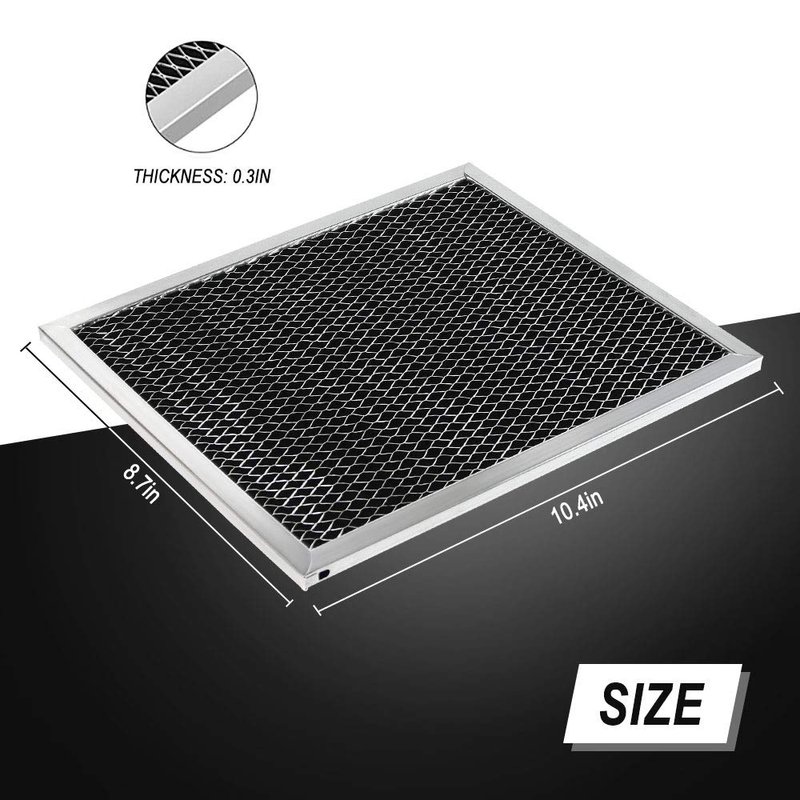 - 【PRODUCT SIZE】: The aluminum carbon composite stove fan filter is designed to help capture and eliminate cooking grease and oil mist. (Approximate Dimensions: 8-3/4 x 10-1/2 x 3/8 inches).