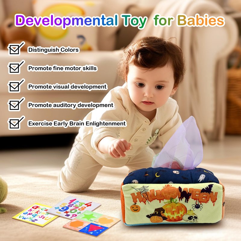 - Halloween Baby Tissue Box Toy - My First Baby Halloween Tissue Box. It must be the first toy for baby toddler halloween toys, halloween gifts, halloween treats, halloween party favors, halloween treat bags.