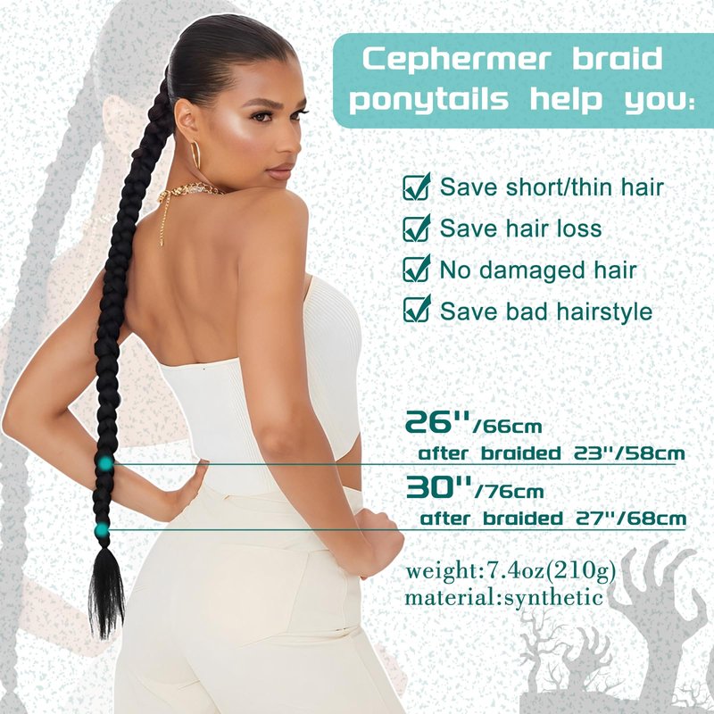 - Instant Transformation: Elevate your look effortlessly with our Cephermer long braided wrap ponytail extension. Change your hair color, style, length, or texture without the commitment or damage caused by chemicals and heat.