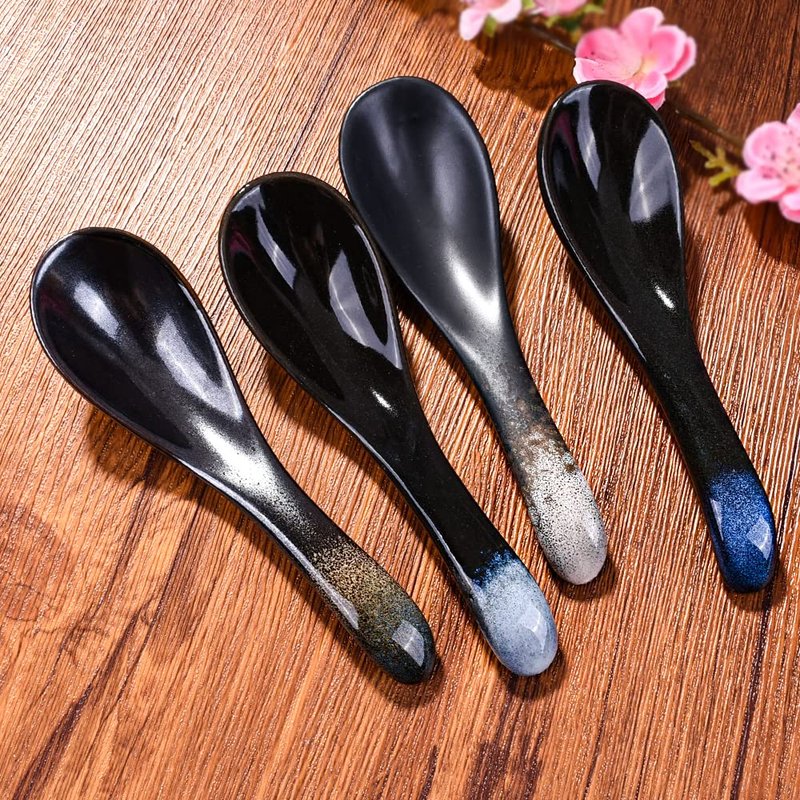 - Spoons size: 5.7 inch length, 1.7 inch width, A total of 4 spoons, 3 glazed porcelain spoons, 1 no glaze vintage spoons, please understand before buying.