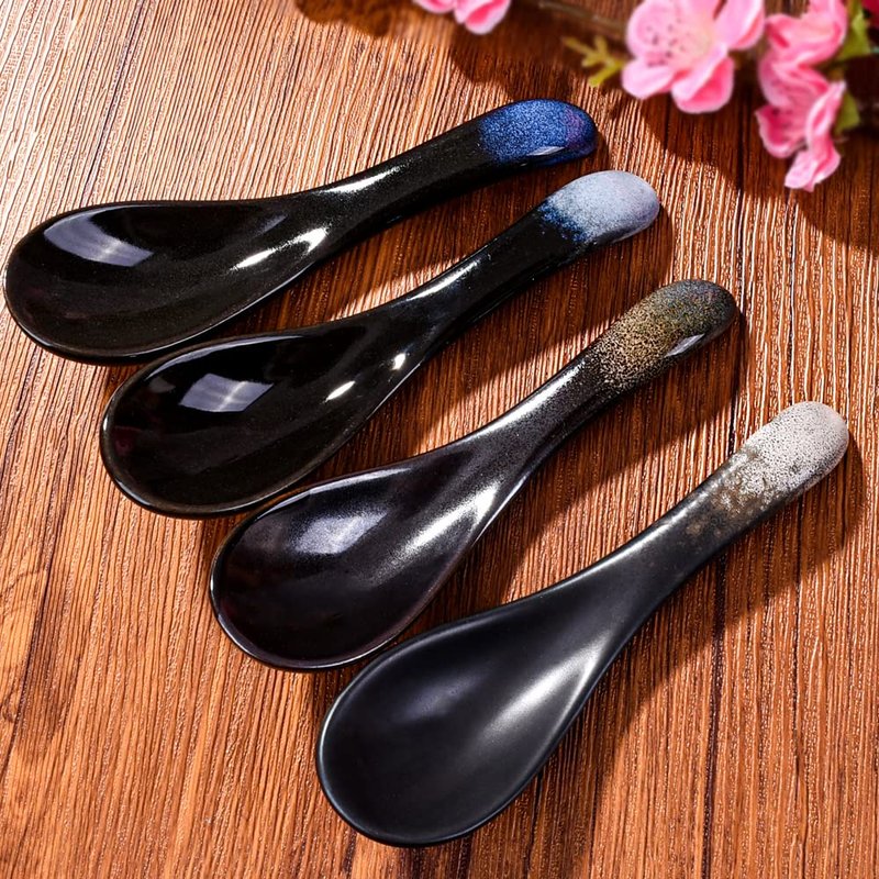 Ceramic Asian Soup Spoons Chinese Japanese Soup Spoon for Ramen Pho Miso Wonton, Set of 4