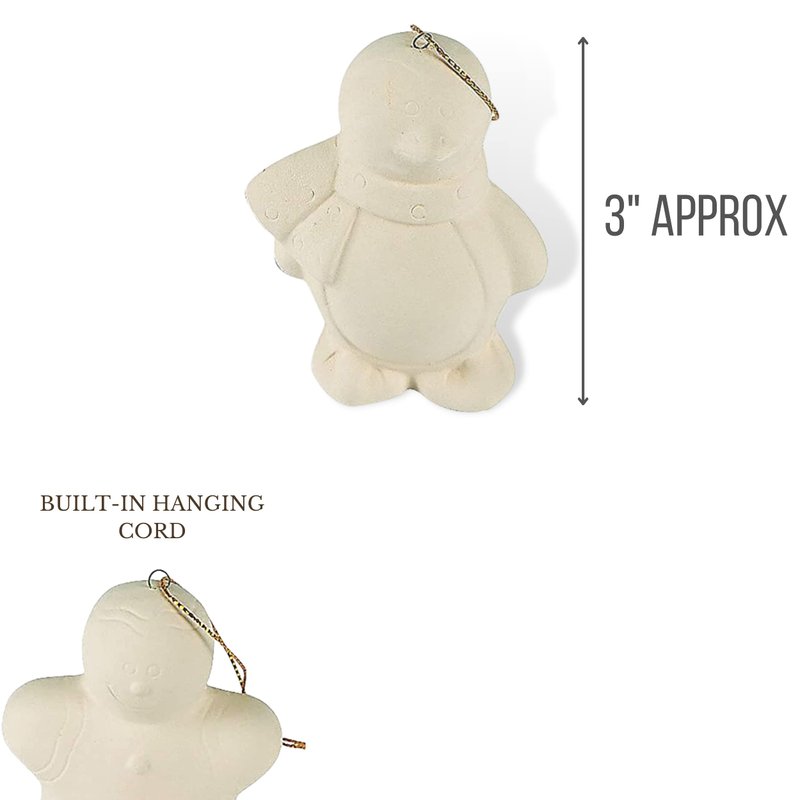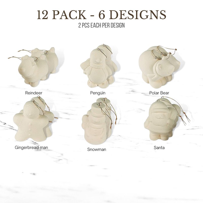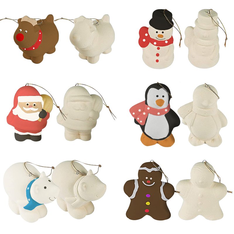 - 6 styles - Includes 2 pieces of each: penguin, Santa, snowman, gingerbread man, reindeer and polar bear Unpainted DIY Ceramic Figurines. The perfect DIY Christmas ornament crafts for adults who love to paint
