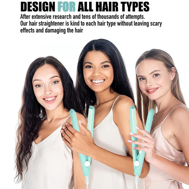 - Hail the Versatile Design: Our 2 in 1 Mini Hair Straightener isn't just a hair straightening tool, it's also an excellent hair curler. Perfectly engineered for all hair types, this versatile unit is especially great for sprucing up see-through bangs. So, whether you like your hair curly or straightened, you have the convenience of choosing your preferred at your fingertips.