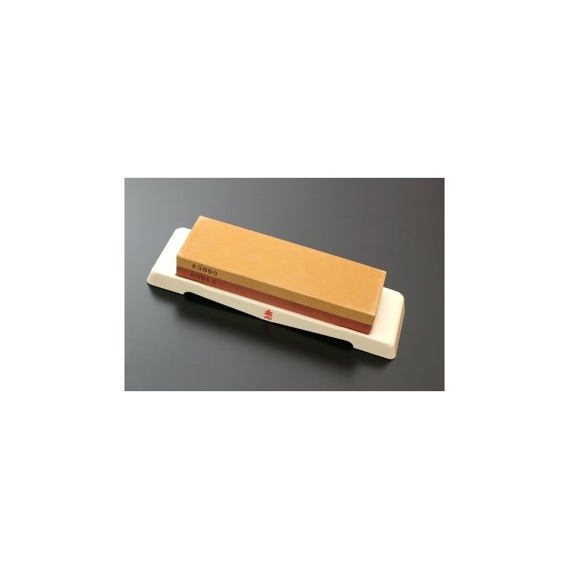 KANETSUNE Double Sided Ceramic Sharpening Stone #1000 & #3000 Grit KC-652. Double Sided Ceramic Water Sharpening Stone with non-skid mount baseCorse & Medium Grit (#1000 Grit & #2000 Grit)
