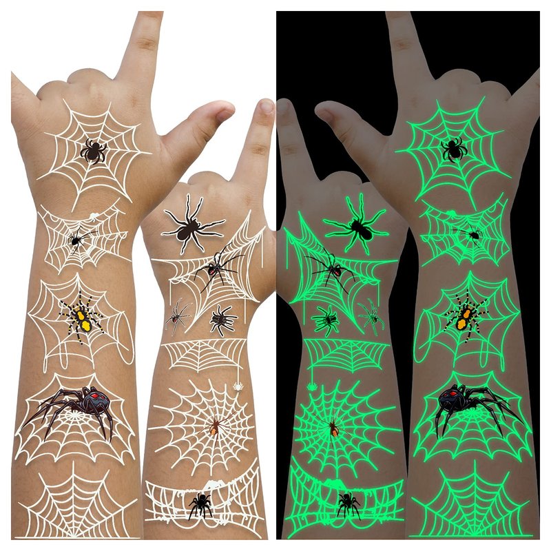 - 【Good Quality&Luminous Design】These Spider tattoo stickers are made of environmentally friendly materials, safe and gentle on the skin, waterproof and long-lasting, the luminous design caters to the atmosphere of Halloween night carnival, it will accompany you to spend a perfect Halloween party!
