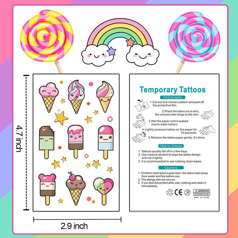 - 【Safe Quality 】 Good quality printing makes all dessert patterns colorful and realistic, waterproof and long lasting. They can last for 3-5 days. Importantly, which is non-toxic and harmless to kids, non-allergenic for kids skin.