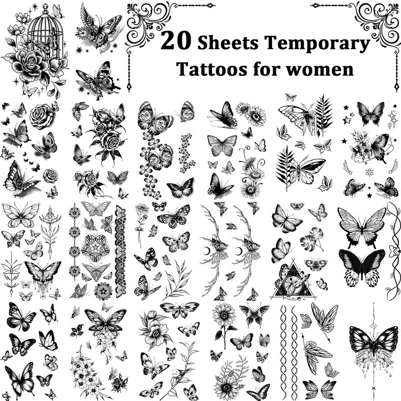 - 【Waterproof & Long-lasting】 20 semi-permanent butterfly temporary tattoo paper kits without duplicate designs, they are waterproof and sweatproof for all types of occasions and stay on your body for 3-5 days!