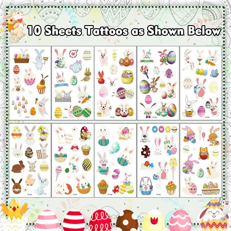 - 【Easter Favors】 Bunny Eggs temporary tattoos sheets make kids' Easter parties fun! They are for Easter, Easter party supplies decorations, bag fillers, and basket fillers - the addition to Easter supplies.
