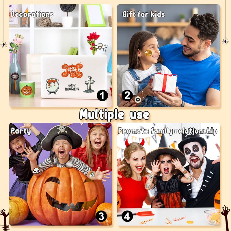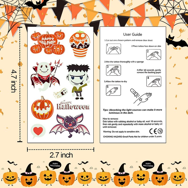- Applicable Scene: For Halloween party supplies, birthday party decorations, party favors, Halloween accessories. These cute Halloween tattoos stickers will bring more fun to the party!