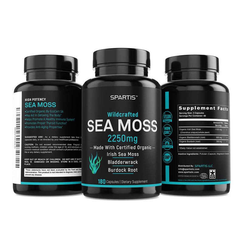 - Quality is our priority, so we go the extra mile to harvest our sea moss from the purest sources of the Atlantic Ocean. We commit to strict quality control to be able to have the Made With Certified Organic By EcoCert, seal of approval. We value transparency and provide no hidden proprietary blend ingredient counts. With 180 capsules at 2,250mg per serving of Sea Moss, we provide adequate value compared to others.
