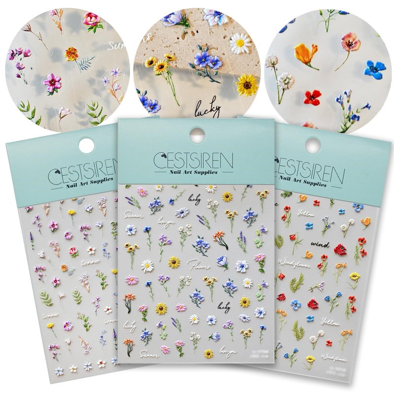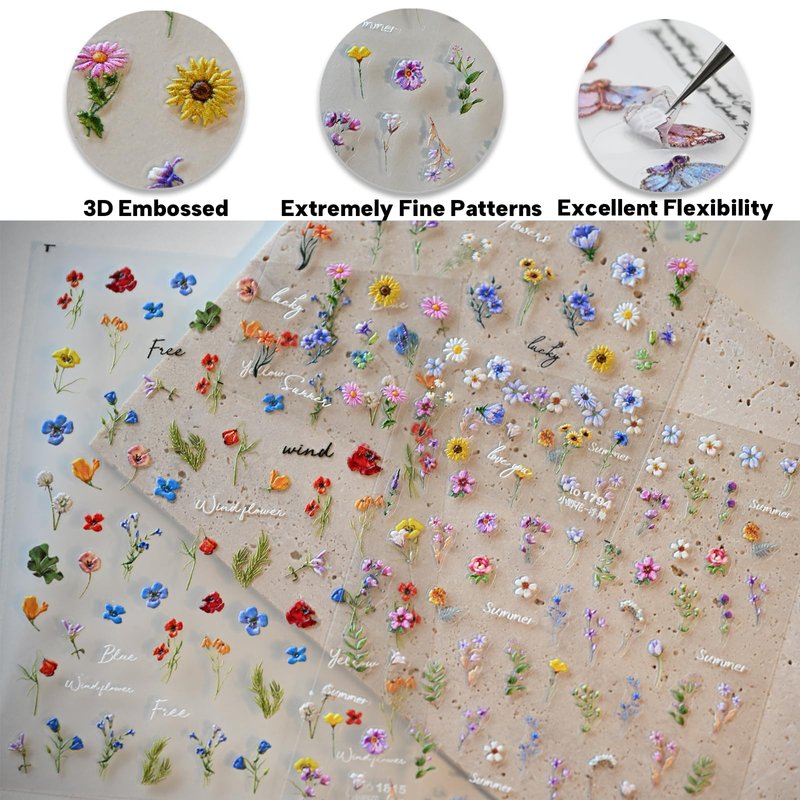 - Nail Stickers Set: You will get 3 sheets of flower nail stickers in 3 different style.All of the stickers are 3D Embossed. Experience the ultimate convenience and creativity with our nail art sticker set